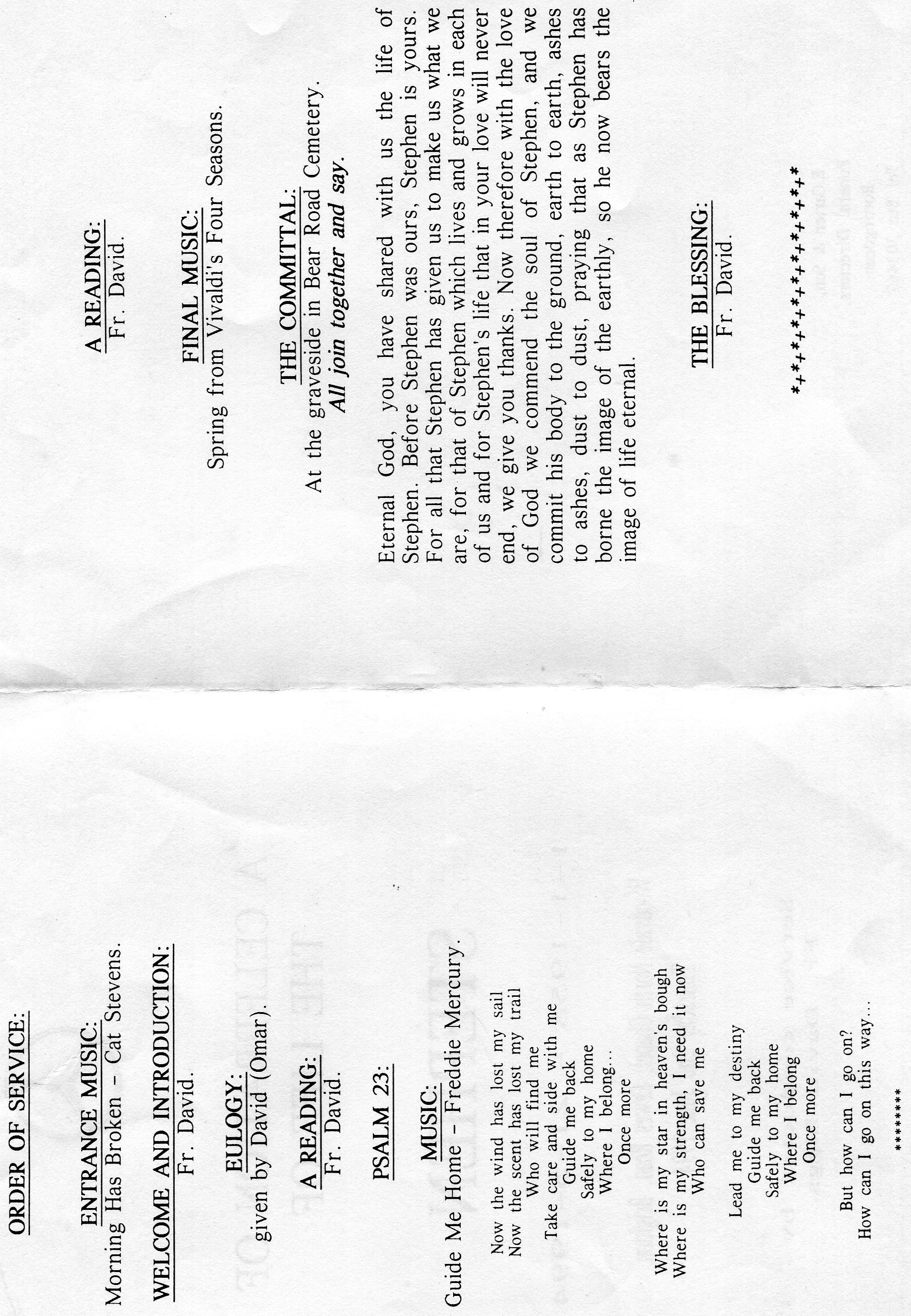 Stephen's Order of Service