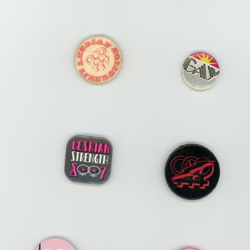 'Lesbian Strength 1986' weightlifter badge