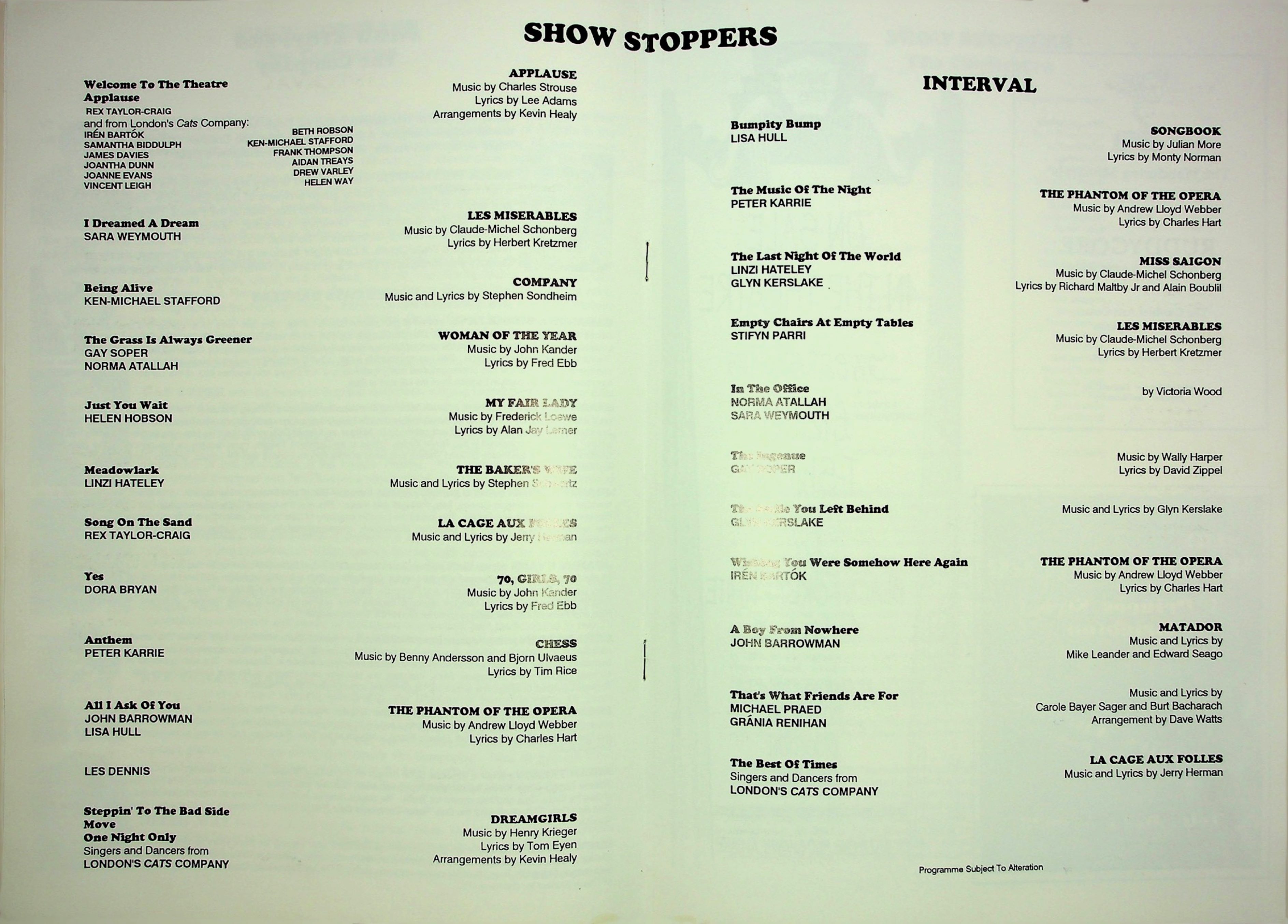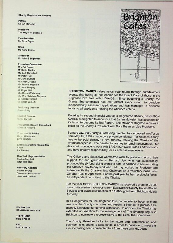 - Brighton Cares presents Show Stoppers, 12 April 1992