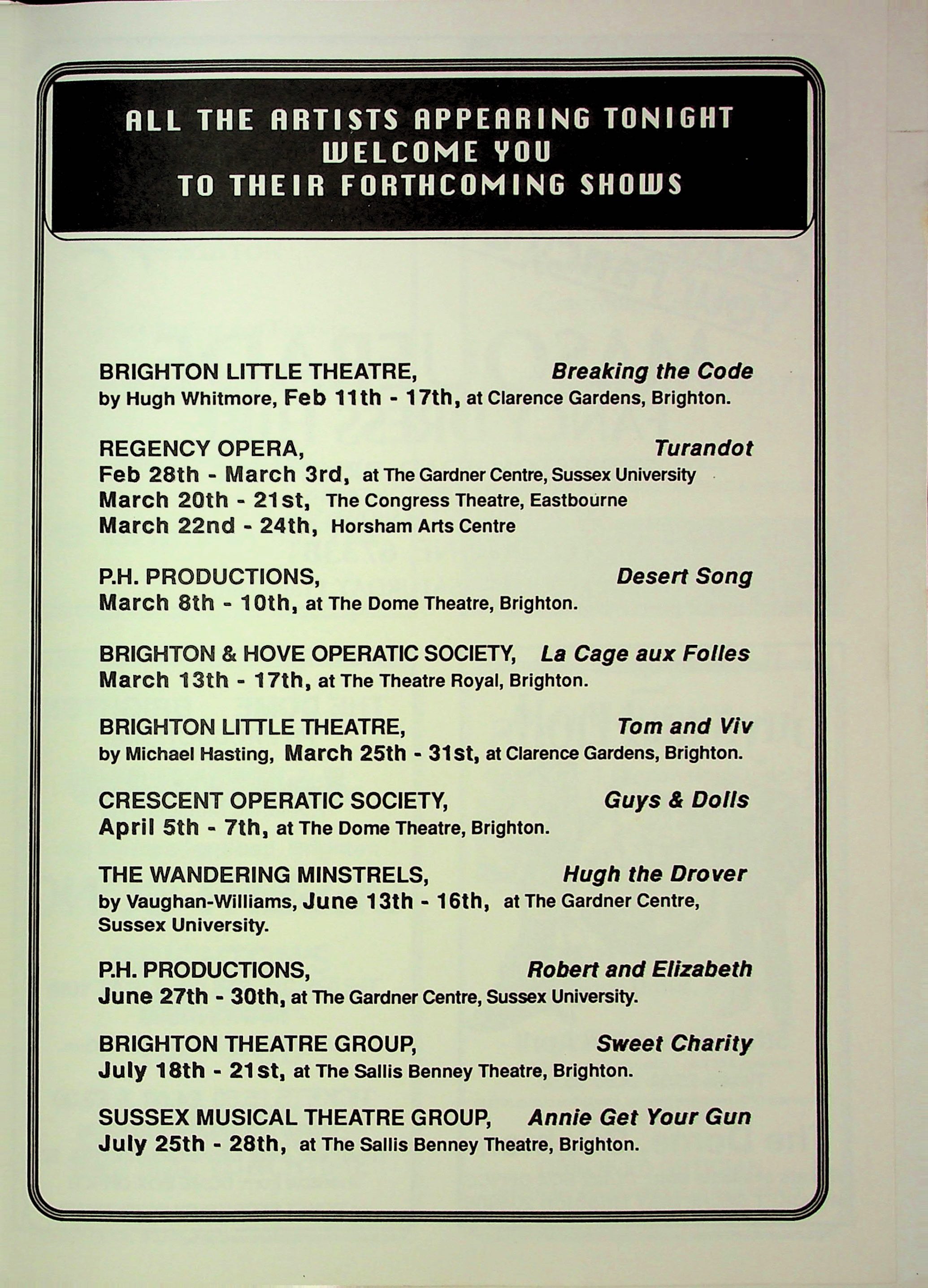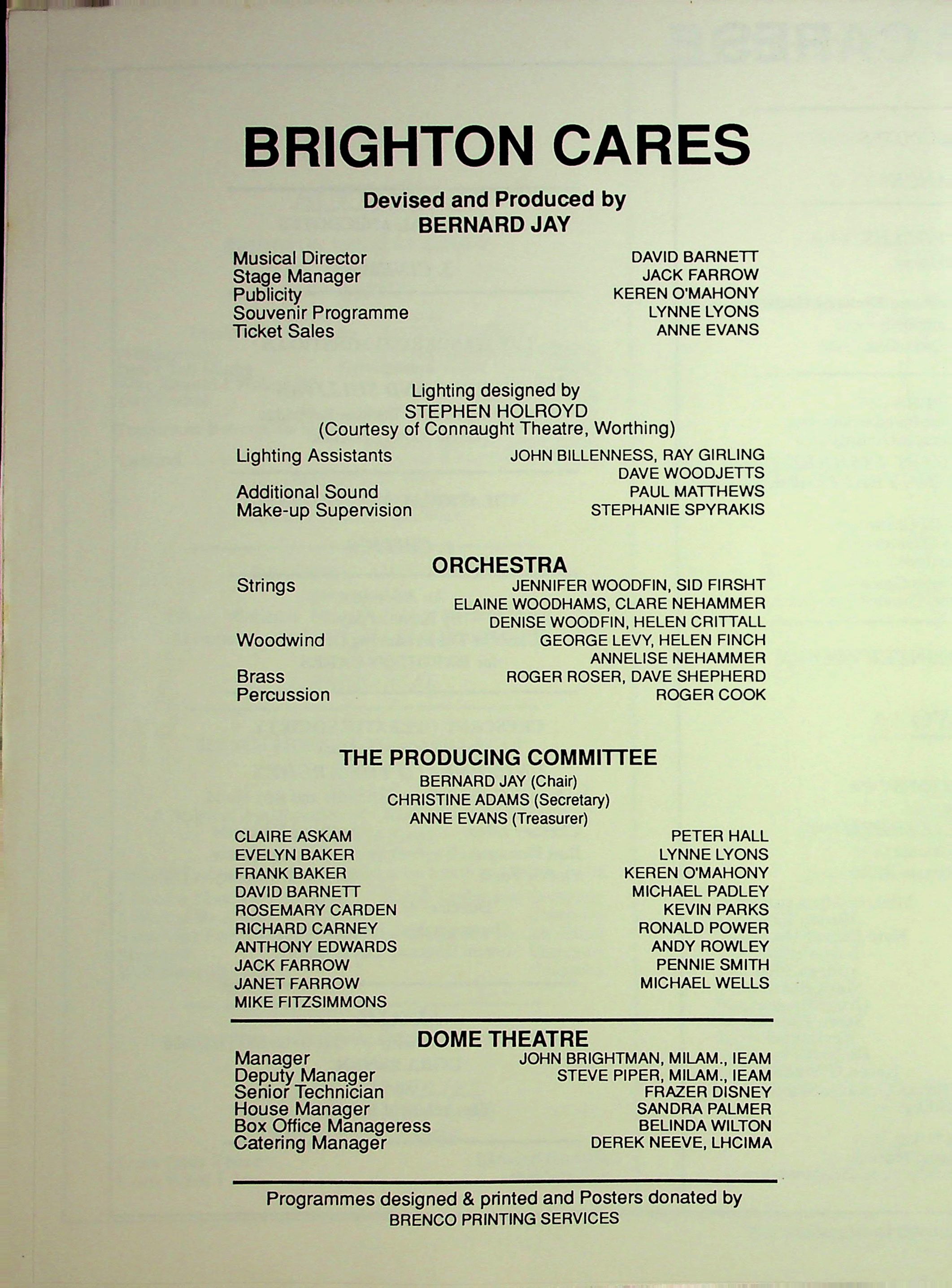 - Brighton Cares, An Evening's Entertainment, 21 January 1990