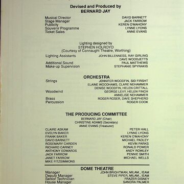 Musical comedy, operetta, opera, and theatrical anecdotes were performed by the actors of Brighton, devised and produced by Bernard Jay.