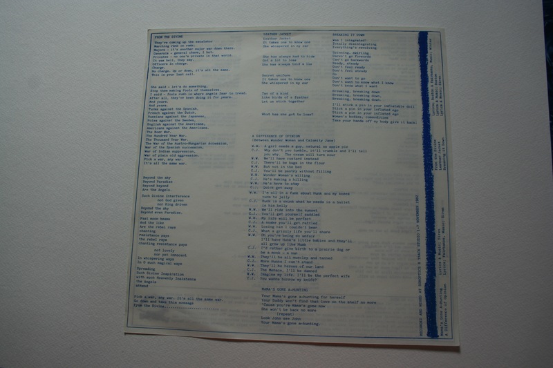 - Album released on the feminist music label ‘Stroppy Cow’. Cover and lyric sheet design by Dawn Saunders. Photos by Deb Shorrocks. Lyric sheet printed by Women in Print.