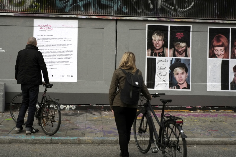 Anthony said of the project: “the prospect of creating this work seemed to me to offer a useful way to further my inquiry into participation and self-representation with groups of marginalized individuals, and at the same time provide an opportunity to confront my own views of queerness as a gay man… Images play a powerful role in the stories we tell about ourselves and the histories told about us. Not Going Shopping expresses the points of view of the participants and myself about what it is to be Queer in Brighton.”