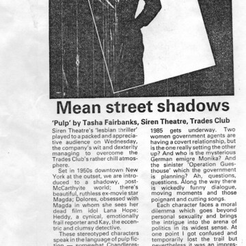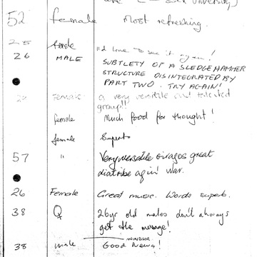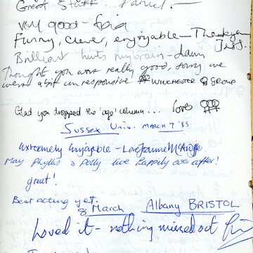 This is a copy of a page from the Comments Book, which was always put out at the exit of the theatres where Siren performed. The comments on this page related to the play, ’Now Wash Your Hands Please’.