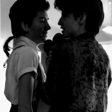 2. A photograph of Janet and another member of Latex theatre performing a short piece at London Pride between 1993 and 1995.
